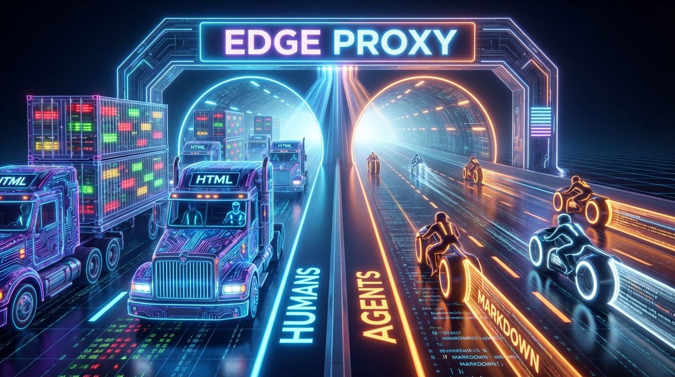 The solution is Adaptive Content Negotiation at the Edge. By utilizing Next.js 16 Proxy Architecture (formerly middleware) or Cloudflare Workers, you can detect the GPTBot User-Agent and transparently rewrite the request to a dedicated /api/markdown endpoint. This delivers a pure .md stream that reduces token usage by ~95% while preserving the exact semantic payload. This is not cloaking; it is Format Optimization.